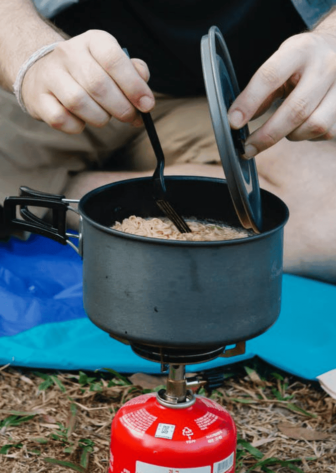 Cook some pasta, add tinned tuna, tinned sweetcorn and cream cheese, heat until hot. Serve. Delicious and so easy when camping.