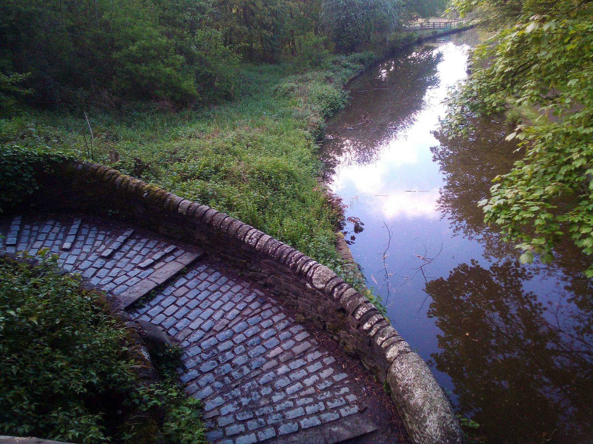 On the Ashton Canal, there are cobbled segments alongside the locks, and there are often gaps large enough between the stones for a wheel to go in.