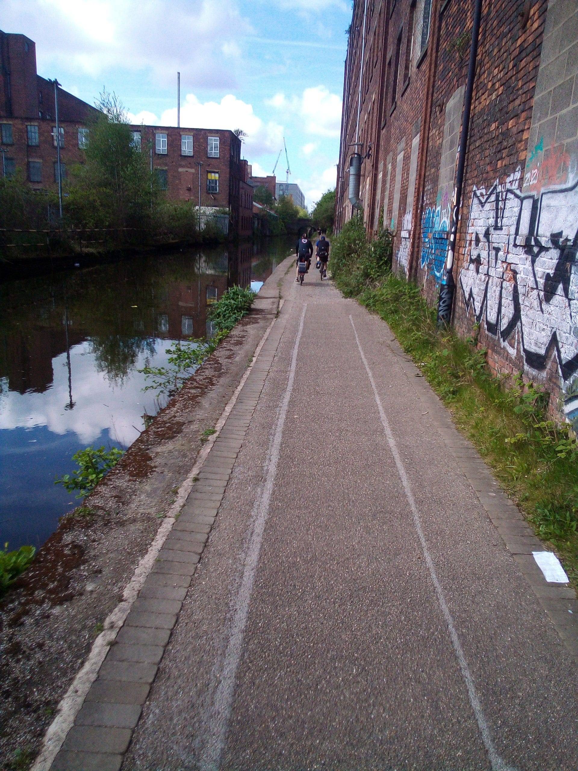 Though the Ashton Canal towpath (except for those cobbled parts) is tarred, there are speedbumps at regular intervals.