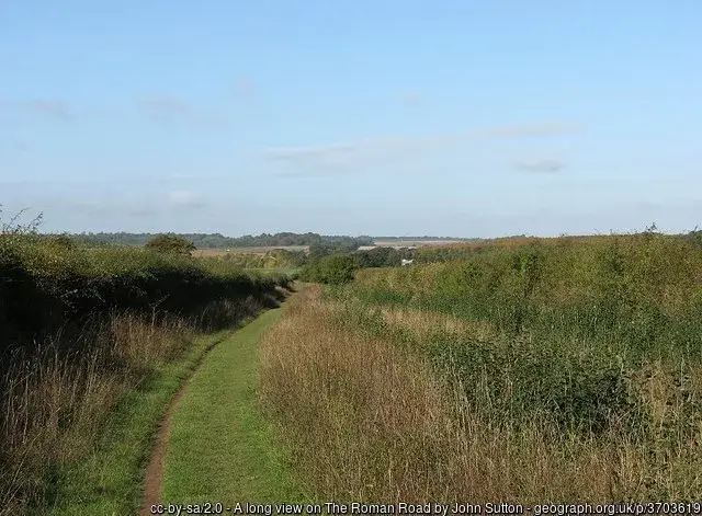 This 12.8 mile route mostly follows the course of an old Roman road, hence the name. Starting in Cambridge, the route is initially on (normally) quiet roads, with a stretch on a segregated cycle path, but soon picks up the actual remains of a Roman road.